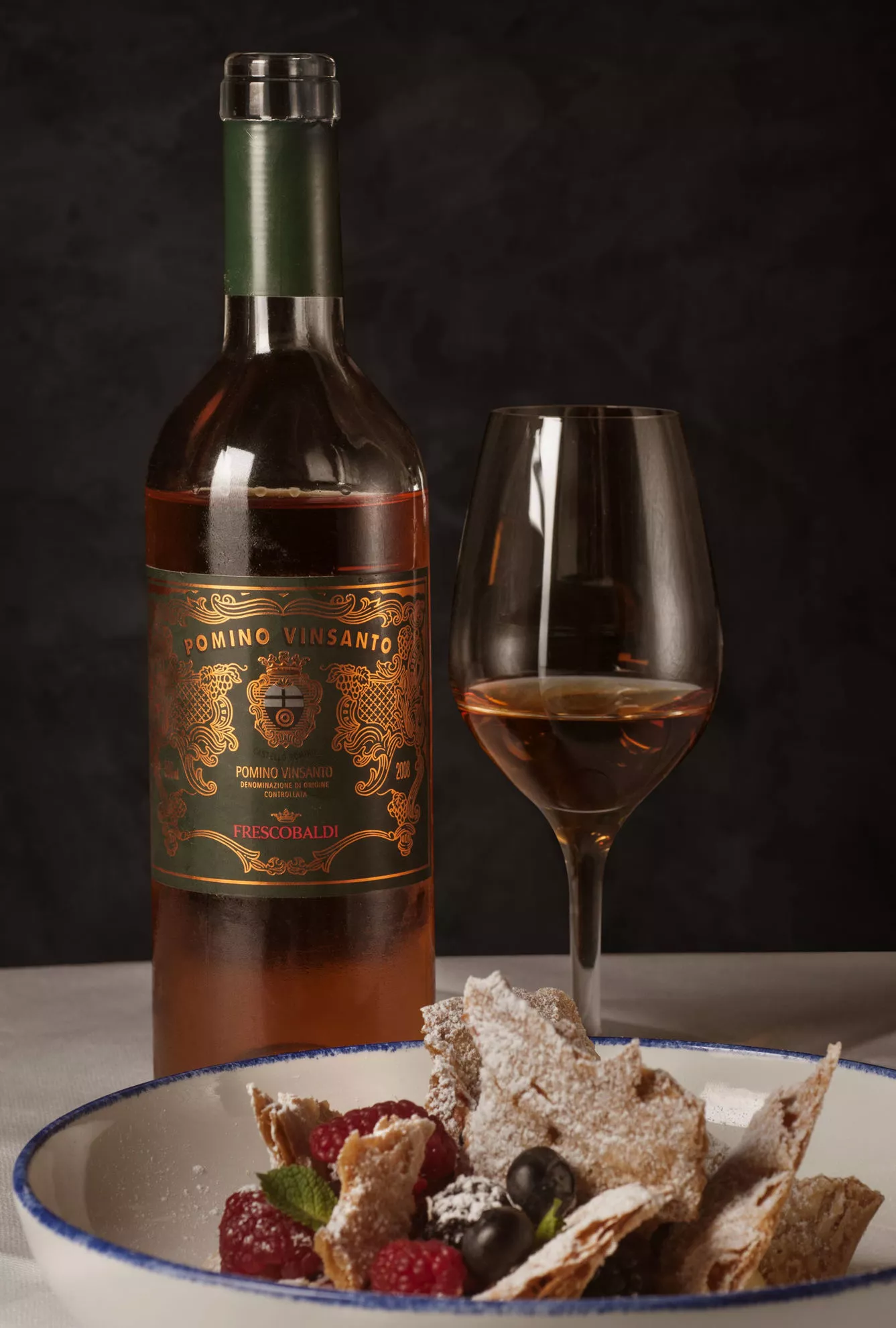 Questa escursione fra i migliori vini bianchi toscani non può che concludersi con un gioiello unico: il Vin Santo. Si tratta di un tipico vino toscano da dessert, prodotto con uve di tipo Trebbiano e Malvasia lasciate appassire, in modo da poter ottenere un allontanamento dell’acqua dagli acini e, così, una percentuale zuccherina più alta. Fra i vari tipi di Vin Santo che ogni anni vengono prodotti in Toscana, si distingue il Pomino Vinsanto DOC Frescobaldi. Si tratta di un uvaggio a base di Trebbiano, Malvasia Bianca Toscana e San Colombano, e di una produzione che prevede un lungo appassimento e sette anni di maturazione in piccole botti di legno. Ne deriva un vino dal colore ambrato intenso e dall’eccellente varietà aromatica, in cui spiccano vari tipi di frutta secca, fra cui noci, mandorle e albicocca secca. È un ottimo vino da meditazione, che si abbina a vari tipi di dessert, a partire, ovviamente, dai classici biscotti secchi toscani alle mandorle, i cantucci.