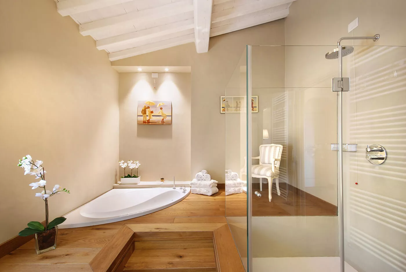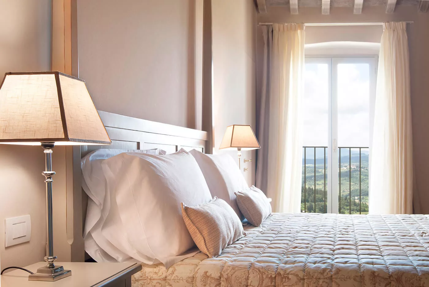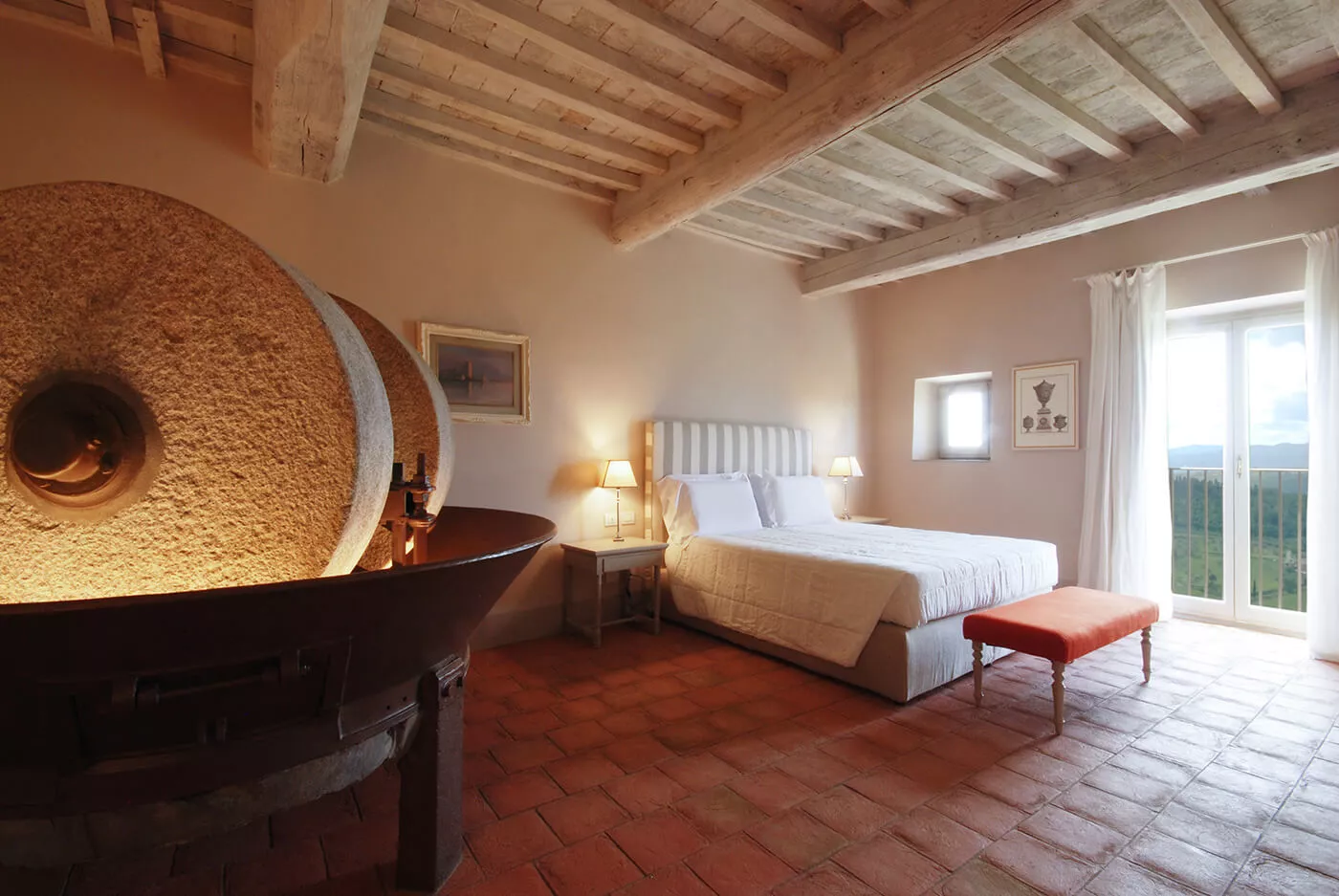 Lasciati incantare dalle esclusive camere dell’antico frantoio, dalla vista panoramica che si gode dalla Jacuzzi sulle colline e i vigneti fino alla valle del fiume Arno.