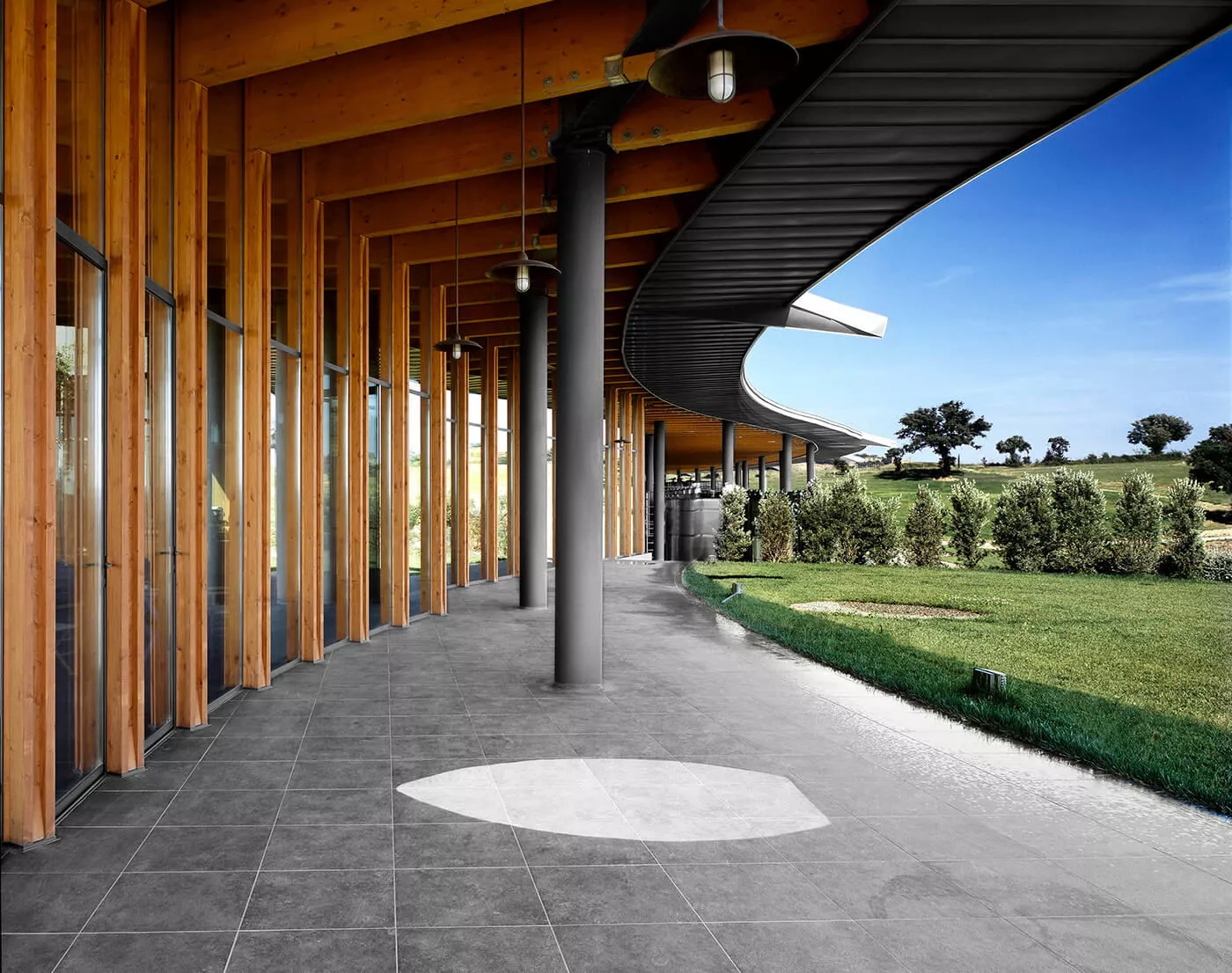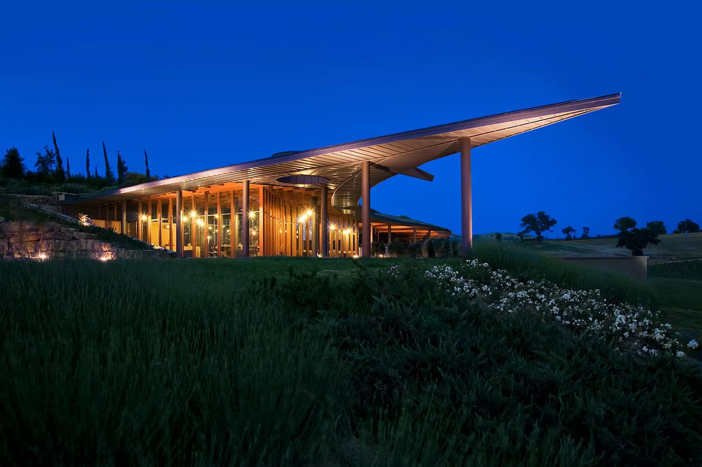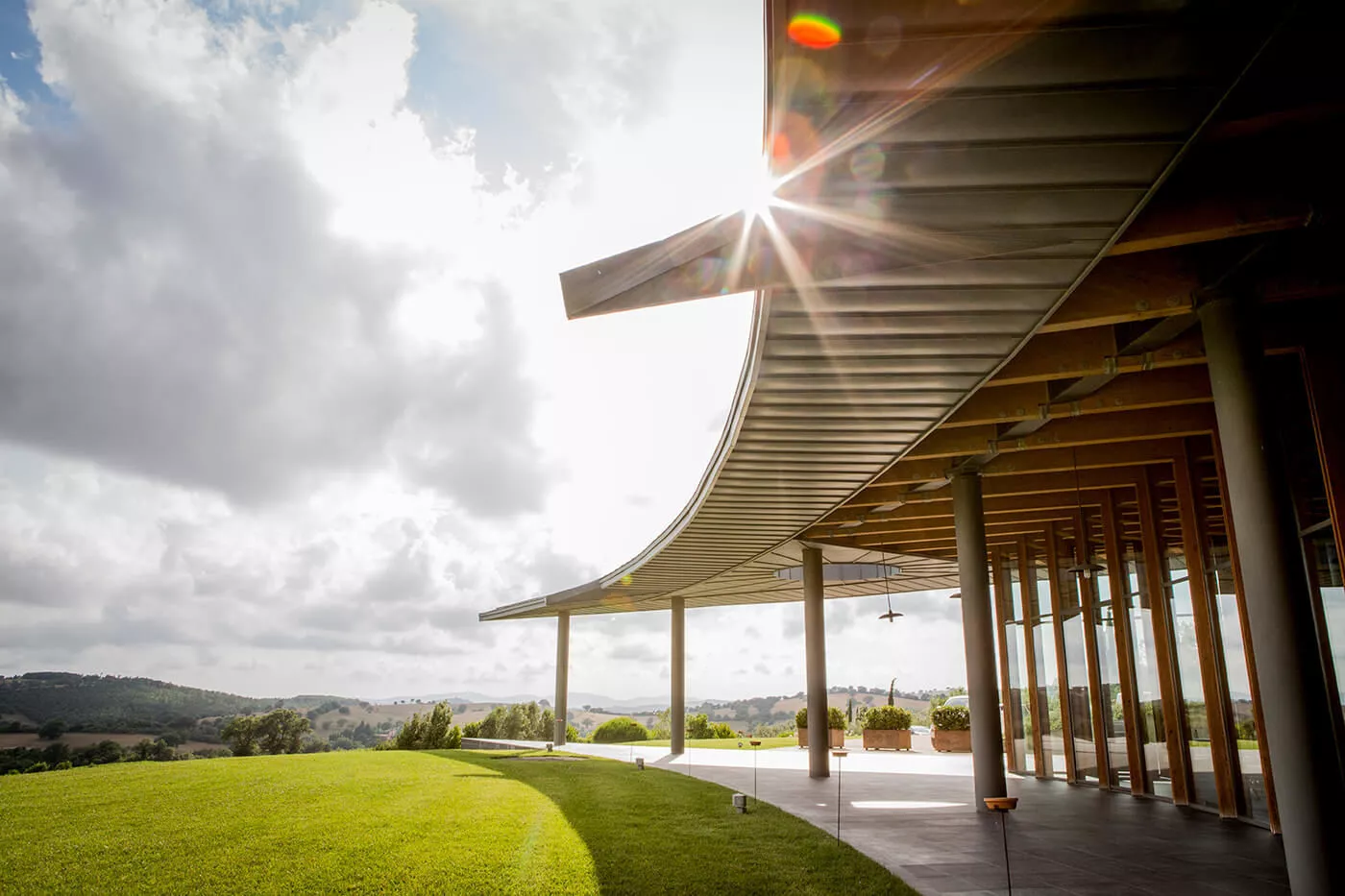 La cantina d’autore della tenuta ha origine dal progetto di Piero Sartogo e Nathalie Grenon e oggi rappresenta un tempio di design al servizio della qualità produttiva e del rispetto per l’ambiente circostante, integrandosi a meraviglia con esso.
